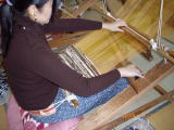「ネマリバタ」という織り機で、木綿布や絹布を細く裂いたものを横糸に使い、一段ごとに杼(ヒ=叩いて目を詰めるための棒)でトントンと打ち込んで織るため、しっかりとした織布(おりふ)ができます。